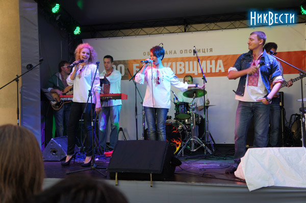 В среду, 15 августа, возле ДК «Молодёжный» в Корабельном районе состоялся концерт участников шоу «Голос країни» при активной поддержке Объединенной оппозиции «Батьківщина». Мероприятие, которое должно было начаться в 19:00, чуть было не испортил дождь. Но всё обошлось, население на концерт собралось в большом количестве, лить прекратило. Приятно порадовал живой звук, хотя сцена была маленькой и еле умещала и музыкантов, и троих вокалистов.