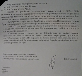 Начальник департамента жилищно-коммунального хозяйства Николаевского городского совета Валентин Гайдаржи заявил, что на улицах Херсонское шоссе, Космонавтов, Скороходова, Ульяновых уже выполнен ремонт асфальтобетонного покрытия.