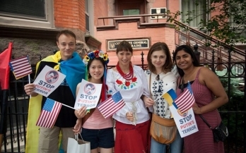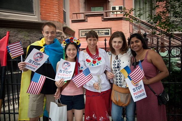 В воскресенье, 17 августа, в крупных городах США представители украинской диаспоры провели акции протеста у дипломатических учреждений Российской Федерации, под общим названием Марш единства.