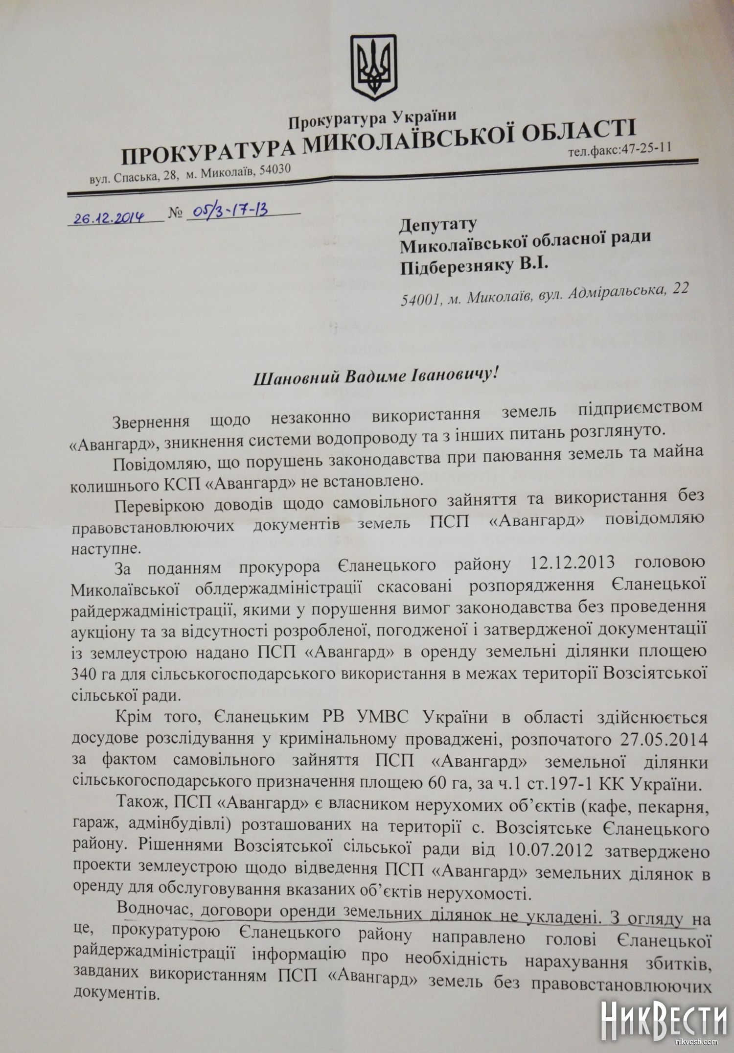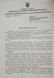 В ответе ведомства отмечается, что главе Еланецкой райгосадминистрации направили информацию о необходимости насчитать убытки, которые нанесло ЧСП «Авангард».