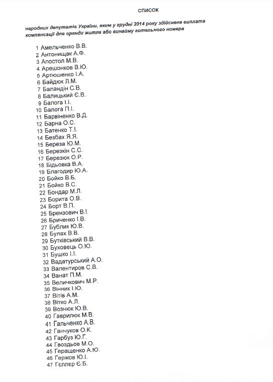 Почти 300 народных депутатов получили компенсацию за аренду жилья за декабрь 2014 года, среди которых оказались и депутаты-миллионеры.