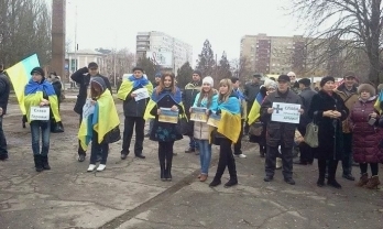 Около 100 проукраинских активистов проводят акцию в поддержку мобилизации возле здания Краматорского городского военкомата (Донецкая область), - сообщает «ОстроВ».
