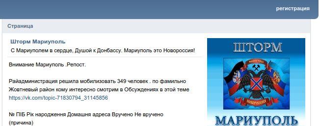 Сепаратисты выложили в соцсети список подлежащих мобилизации жителей Мариуполя