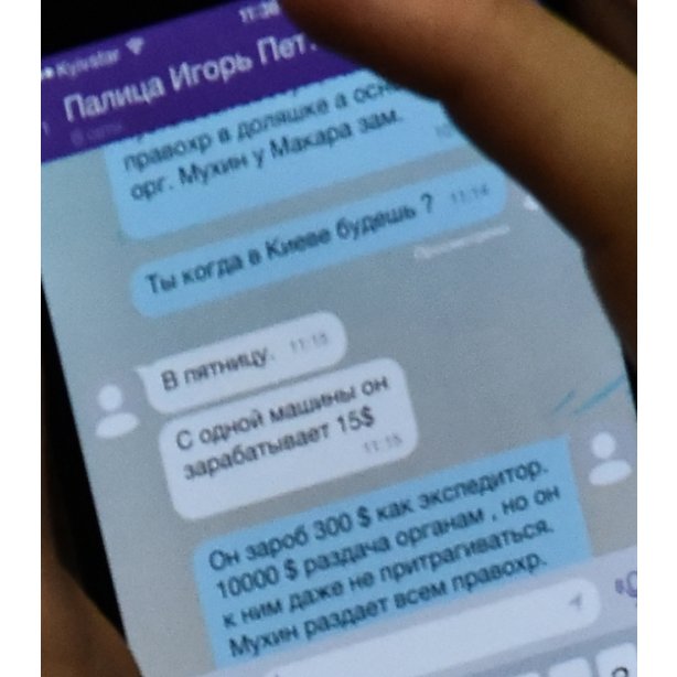 — В пятницу. С одной машины он зарабатывает 15$, - отвечает адресат под именем Палица Игорь. (Издание полагает, что речь идет о 15 тысячах долларов).