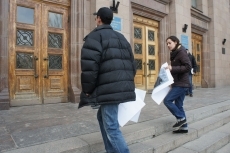 Молодые люди развернули свои плакаты и принялись озвучивать свои требования.