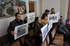 Постояв, молча держа свои плакаты, митингующие приняли решение зайти на «сессию горсовета», чтоб показать депутатам свои плакаты. На деле они зашли в малый зал, где заседали члены постоянной комиссии по вопросам экономической политики, планирования, бюджета и финансов.