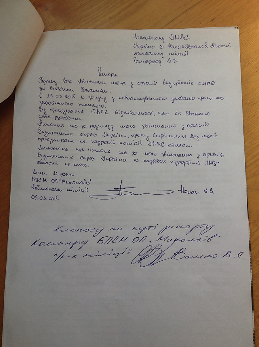- Спустя полгода службы комбат ушёл на повышение, ну думаем, всё, начнём работать именно так, как того требует время, ситуация и место... Но не тут-то было. Все наши начинания обрастали бюрократической мишурой, тормозились распоряжениями, подписанными еще наверное Берией и Ежовым, по некоторым из которых до сих пор (!) "работает" наша милиция. Вдобавок, все тормозилось некомпетентностью и нежеланием нового руководства батальона, а также самодурством руководства главка области. Некомпетентность нового руководства батальона зашкаливает до заоблачных высот, к сожалению, руководство МВД области нас не услышало, - пишет экс-боец батальона «Николаев», публикуя свой рапорт.