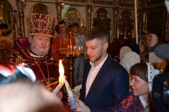 Народный депутат Украины Артем Ильюк передал Благодатный огонь, сошедший с небес в Гробе Господнем, в Николаевские храмы в Ленинском и Корабельном районах.