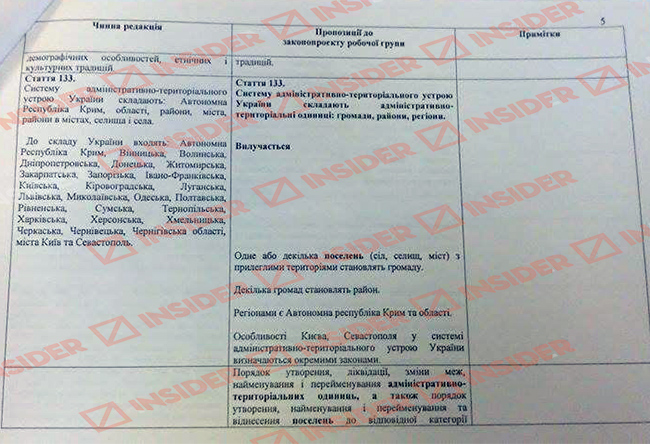 Председатель Верховной Рады Украины Владимир Гройсман показал членам конституционной комиссии «рабочий вариант» изменений к Основному закону в части децентрализации власти.