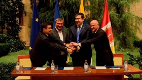 "Мы собрали с международных организаций с миру по ниточке и будем платить сотрудникам зарплаты так, чтобы они смотрели людям в глаза, а не в руки и карманы. Этот центр- часть программы Президента Порошенко 4Д и включает 2Д: дерегуляцию и децентрализацию", написал Саакашвили.