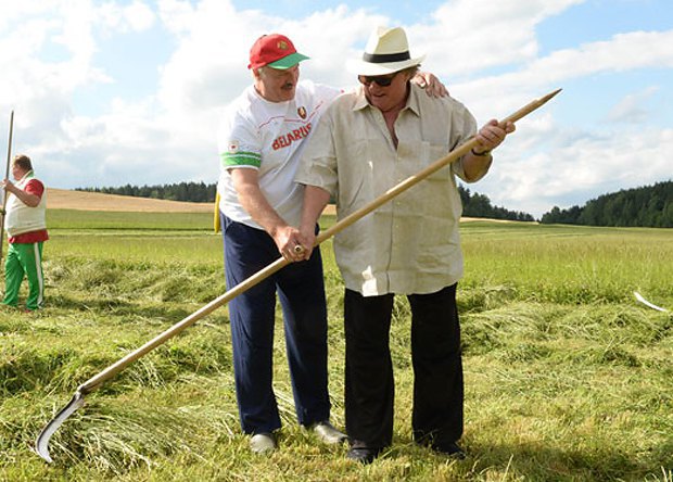 Лукашенко обучил Депардье навыкам ручной косьбы