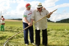 Глава государства провел для Жерара Депардье краткую экскурсию по территории официальной резиденции Президента Беларуси "Озерный" в Острошицком городке, ознакомил с некоторыми образцами белорусской сельскохозяйственной техники и обучил навыкам ручной косьбы.