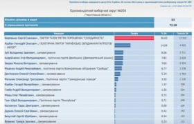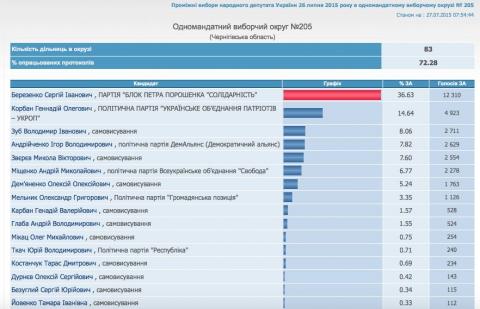 На округе №205 обработано 72% протоколов, Березенко побеждает Корбана