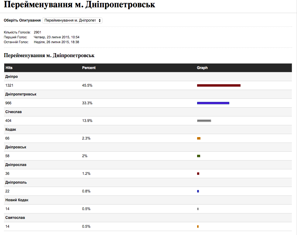 На момент написания новости лидером стало название Днепр. Второе место заняло текущее название — Днепропетровск