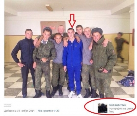 Среди прошлогодних фотографий есть слайд от июня 2014 года со скрытым лицом в форме «горка» и белыми идентификационными повязками, которые характерны для боевиков «новороссии».