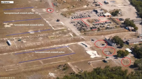 Сообщается, что на фотографиях обозначены две базы российских террористических войск, по совместительству эти базы являются тренировочными полигонами.
