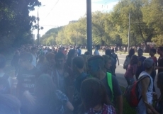 – Люди начали выкрикивать нецензурные лозунги, бросаться палками в машины полицейских. Потом приехал ОМОН, и все побежали к станции, где устроили беспорядки. Я видел, что сломали светофор, забрались на полицейскую будку, кто-то разбил стекло троллейбуса, и я видел издалека, как некоторые люди залезали на полицейские машины, — рассказал очевидец.