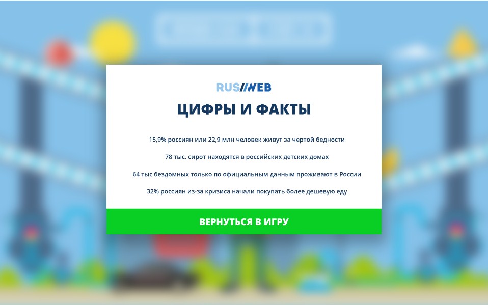 Веб-студия Lamarck по заказу новостного агрегатора Rus2Web создала игру, где нужно спасать продукты, запрещенные ко ввозу в Россию.