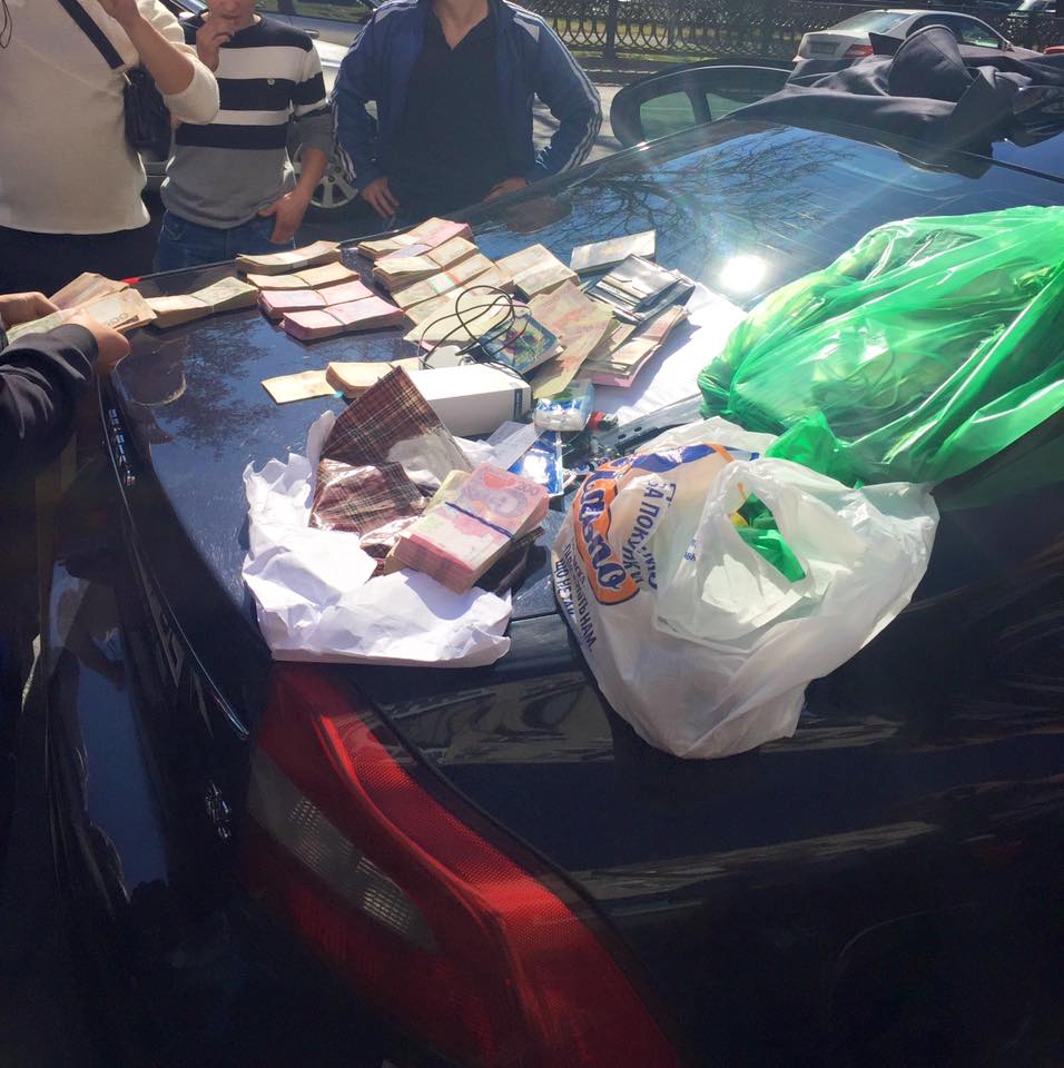Сотрудники спецслужбы задержали чиновника в служебном автомобиле в центре Киева во время получения взятки в размере 622 000 гривен. При осмотре машины правоохранители дополнительно обнаружили крупную сумму денег в иностранной и национальной валютах, охотничье ружье с патронами и прочее.