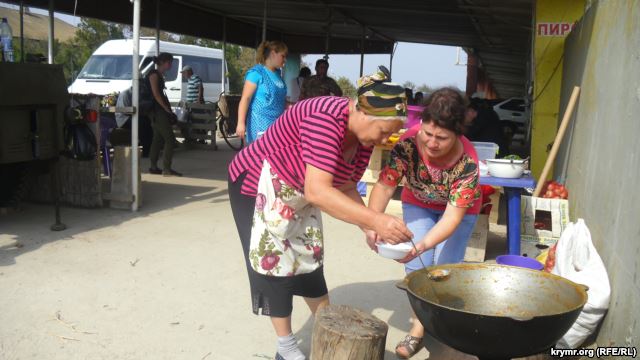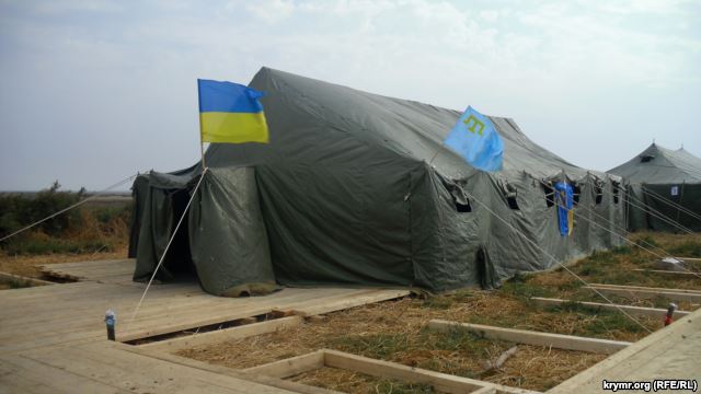 Количество активистов «блокады» Крыма в Херсонской области у административной границы с полуостровом постепенно растет. Здесь уже организовали полевую кухню и монтируют дополнительные палатки для размещения участников бессрочной акции.