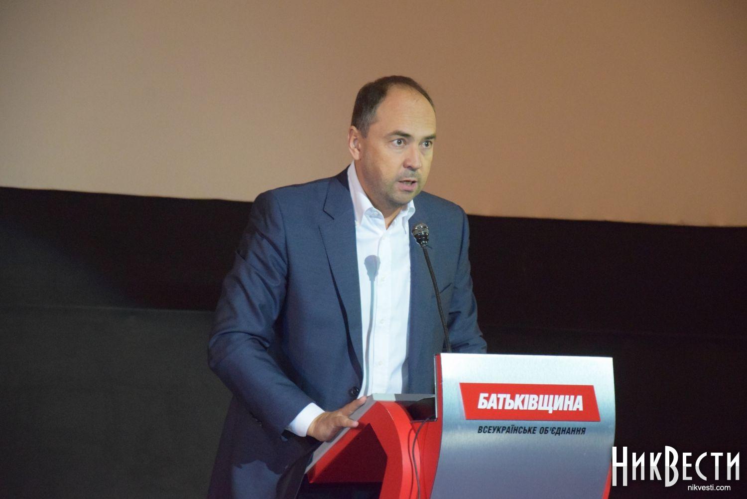 – Мы услышали продукт работы специалистов, профессоров, ученых, руководителей предприятий, я уверен, что это ляжет в основу коалиционных соглашений демократических сил в Николаевской области и будет руководством к службе на благо Николаевской области, на благо интересов жителей со стороны тех депутатов, которые должны работать не на себя, а которые должны служить, в первую очередь, нашим гражданам, землякам. Они должны создавать рабочие места, создавать инвестиционный климат, должны добиться, чтобы конституционная норма «право на бесплатное образование» в нашей области работала, чтобы школы перестали быть органом поборов средств с родителей, чтобы больницы не были источником сбора средств с тех людей, которые нуждаются в лечении, - сказал руководитель николаевской «Батьківщини».