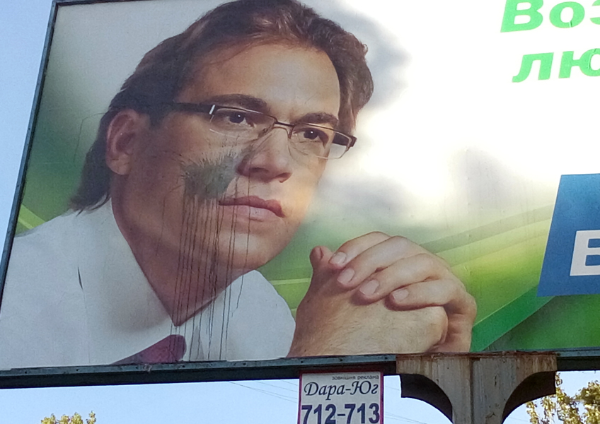 В Заводском районе краской испортили 10 билбордов 'Укропа', 'Оппозиционного блока' и кандидата в мэры Воронова