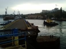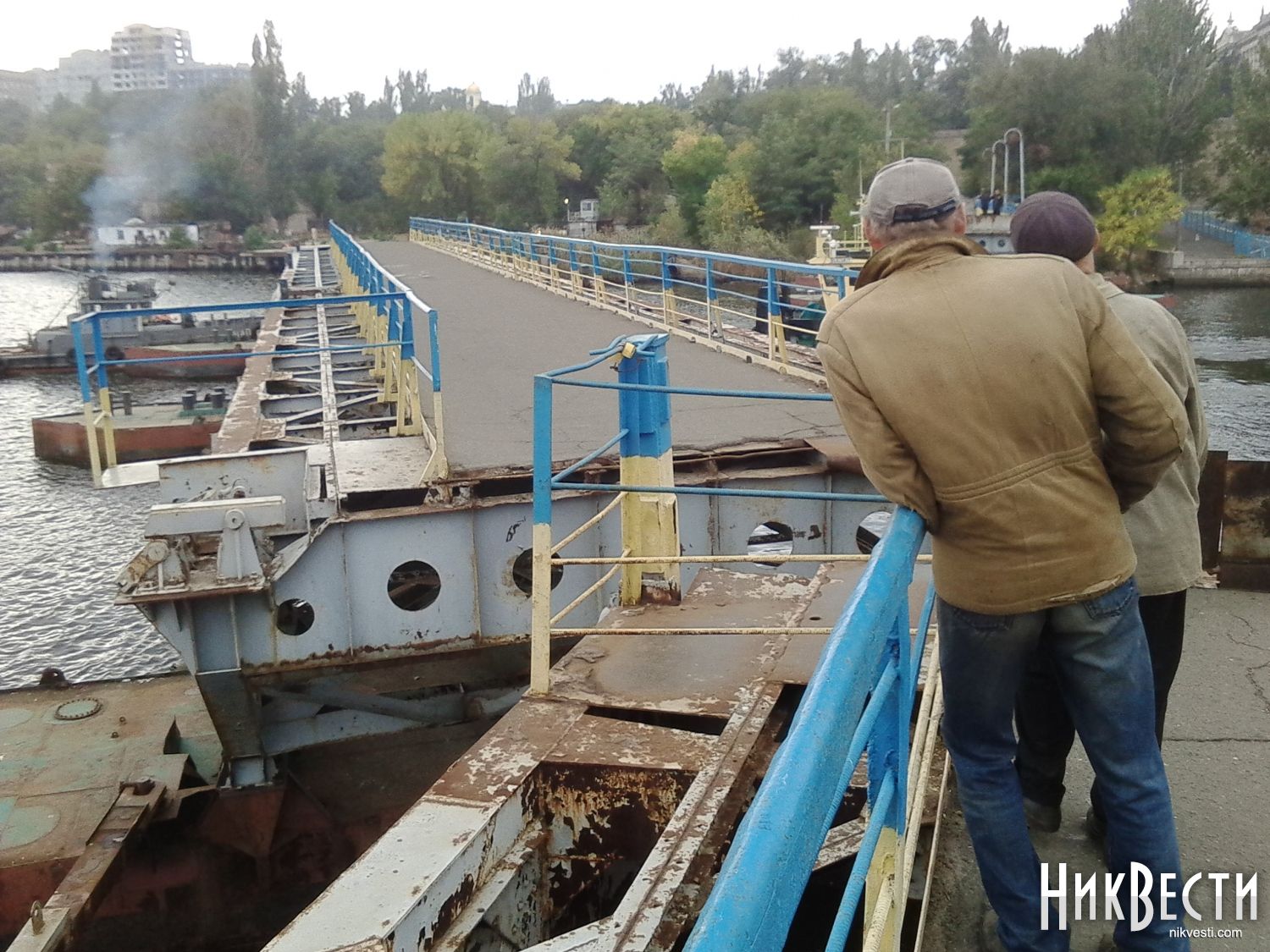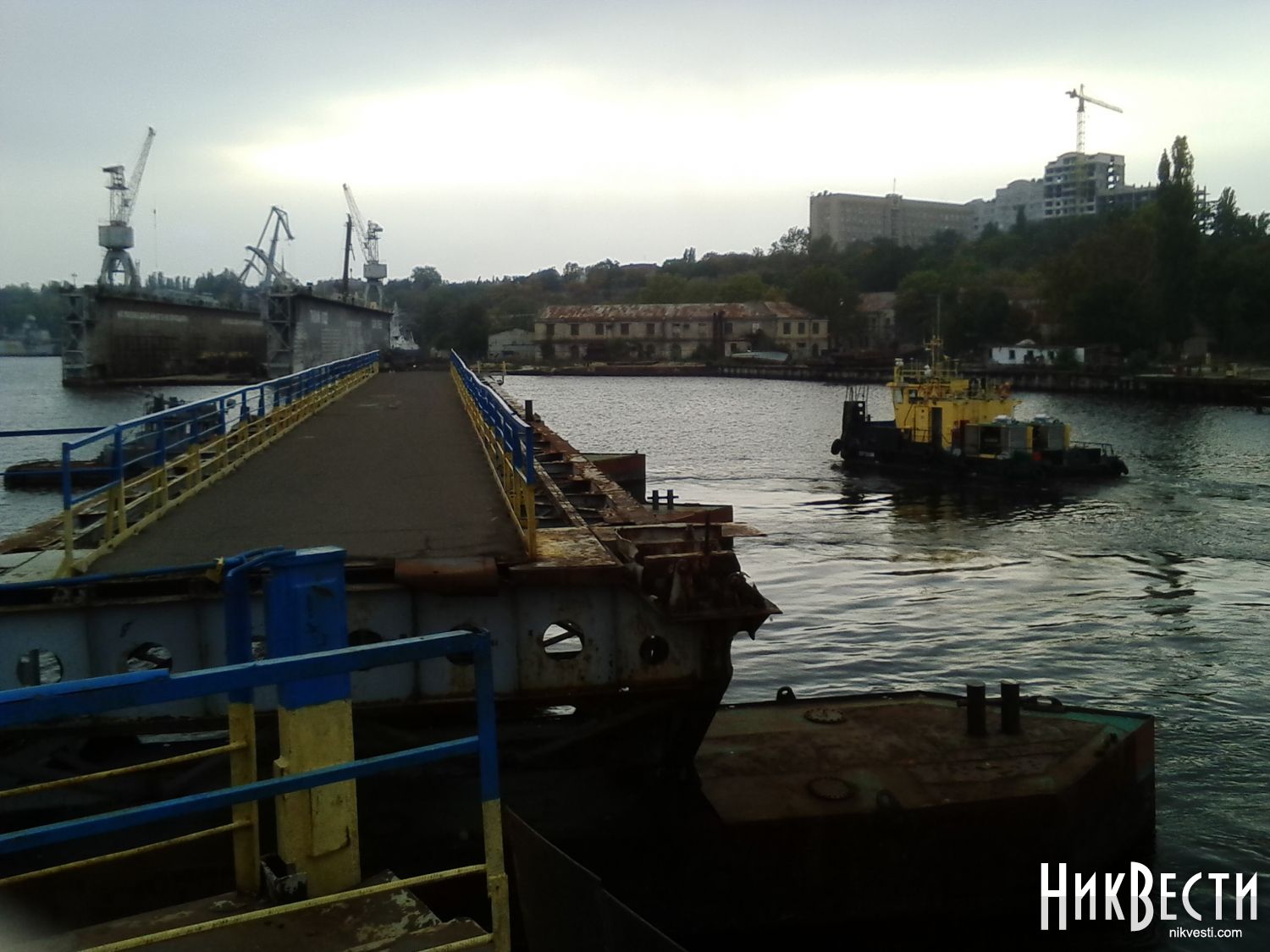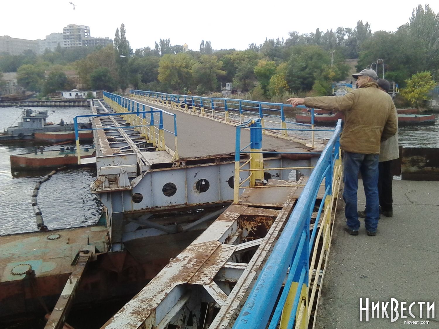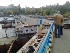Сегодня, 7 октября, в Николаеве в акваторию ГП «Судостроительный завод имени 61 коммунара» для ремонта зашли 2 буксира – для этого развели понтонный пешеходный мост через реку Ингул.