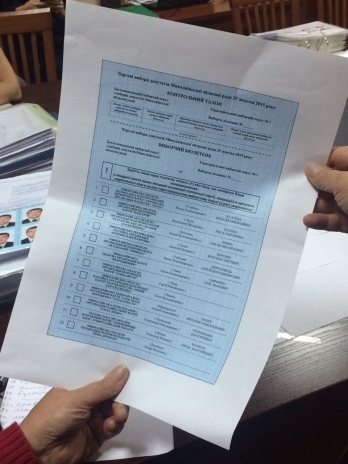 После этого член комиссии Станислав Мартиросов представил присутствующим предварительный дизайн бюллетеня на примере округа №1 в облсовет. Цвет бюллетеня ранее утвердила Центральная избирательная комиссия - им стал голубой.