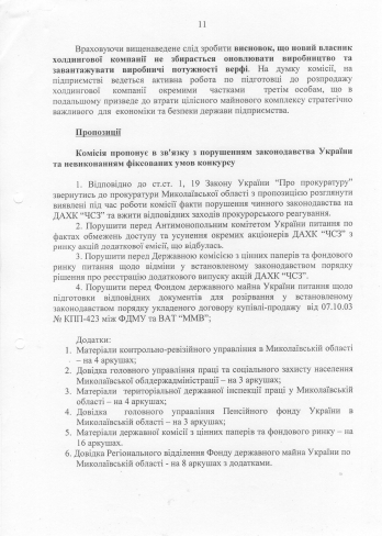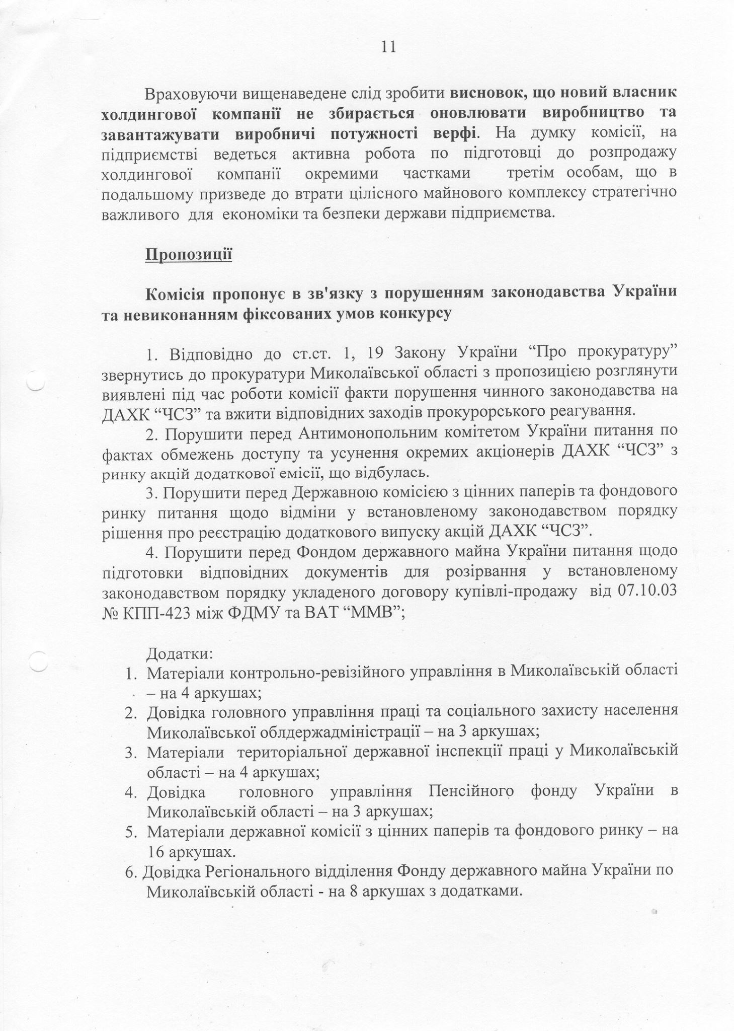 По словам Сергея Исакова, приступив в феврале 2005 года к исполнению своих обязанностей, губернатор Александр Садыков одним из первых своих распоряжений создал комиссию по выяснению реальной ситуации на ЧСЗ. Уже в марте 2005 года комиссия пришла к выводу о необходимости постановки перед ФГИ Украины вопроса о расторжении договора купли-продажи ГАХК «ЧСЗ» за несоблюдение покупателем условий договора и возвращении завода государству.