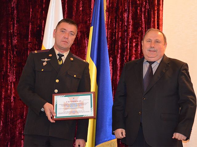 Николай Романчук посетил спасателей, где в торжественной обстановке вручил руководителю аварийно-спасательного отряда специального назначения «Сертификат на получение водолазного снаряжения», которое было приобретено на выполнение Региональной целевой программы защиты населения и территорий от чрезвычайных ситуаций техногенного и природного характера на 2013-2017 годы при содействии Николаевской облгосадминистрации и Николаевского областного совета.