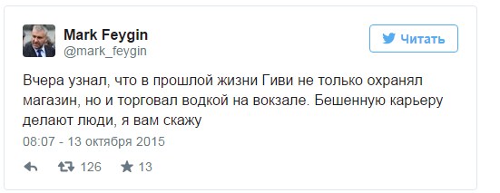 Как оказалось, герой «Новороссии» не только работал охранником в супермаркете, но и торговал водкой. Об этом Марк Фейгин сообщил сегодня, 13 октября, в своем микроблоге Twitter.
