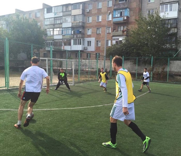 Кандидат в депутаты от Блока Петра Порошенко Сергей Бурковец, который является директором Южной Судоремонтной компании, в роли вратаря принял участие в дружеском матче между его компанией и судостроительным заводов «Нибулон».