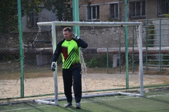 Стоит отметить, что директор ЮСК Сергей Бурковец пришел не только поболеть за своих сотрудников, но и сам защищал ворота своей команды от подач соперника.