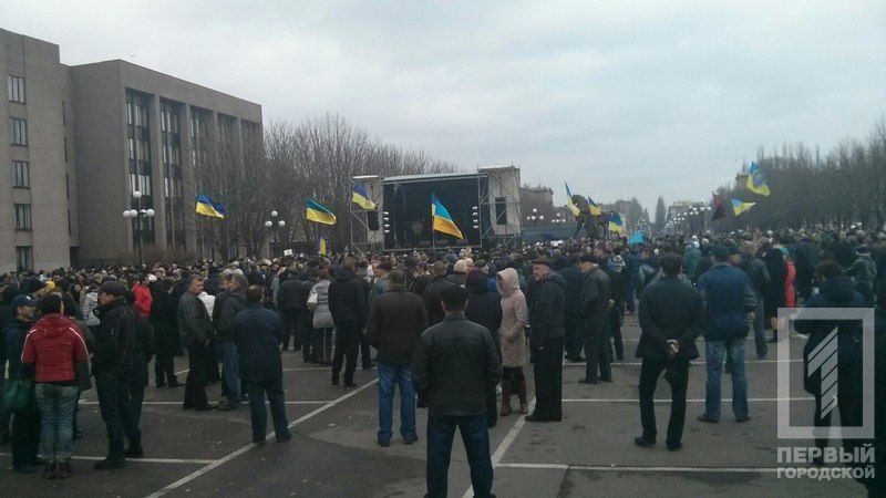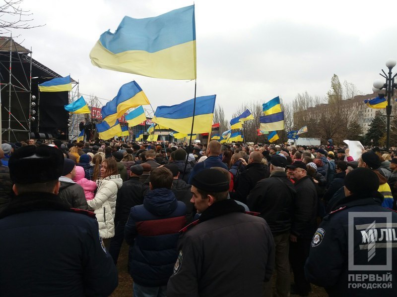 Андрей Садовой призывает Кривой Рог объединяться. Он обещает не сдаваться и призывает Кривой Рог бороться. Сообщается, что людей на митинге около тысячи, многие не решаются заходить в толпу.