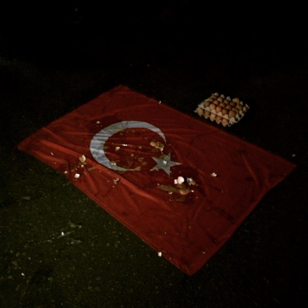 По предварительной информации, турецкий флаг заменили российским, после чего забросали яйцами. Также на асфальте перед воротами завода появились оскорбления в адрес президента Турции Реджепа Тайипа Эрдогана.