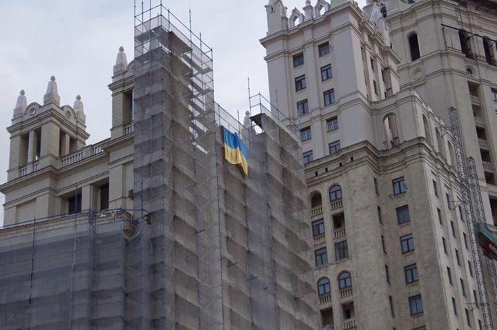 Напомним, 23 ноября в Москве на строительных лесах вокруг здания высотки на Котельнической набережной несколько активистов вывесили флаги Украины. Акция была приурочена к годовщине начала протестов в Киеве в ноябре 2013 года, когда в Киеве собрался митинг с требованием подписать соглашение об ассоциации между Украиной и Европой.