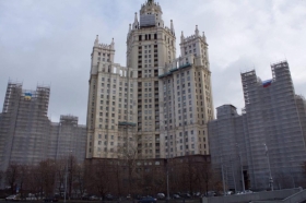 Накануне группа из пяти человек вывесила украинский флаг на строительных лесах вокруг высотного здания на Котельнической набережной в Москве, на котором в прошлом году уже проводилась похожая акция. Трое активистов были задержаны.