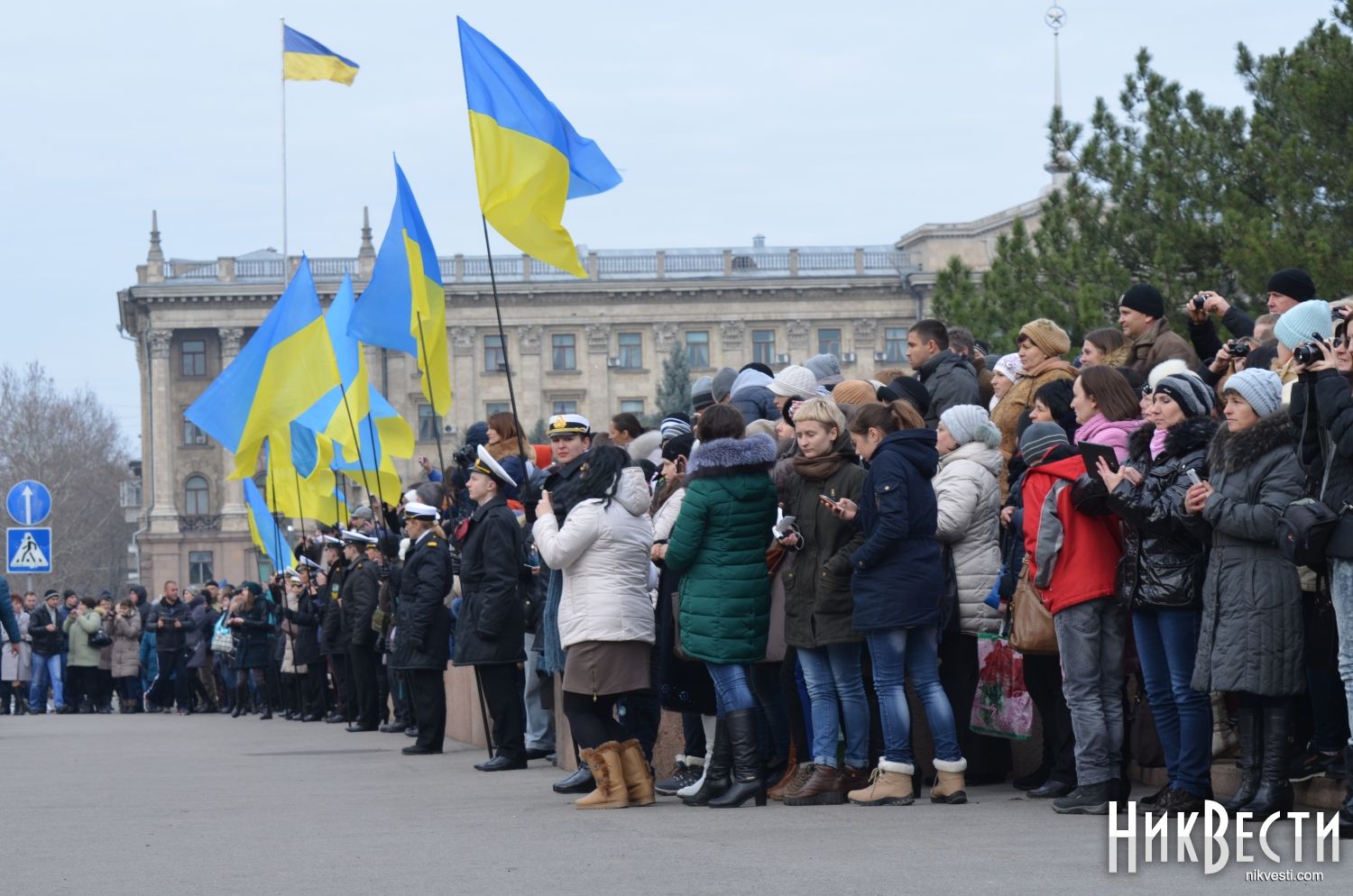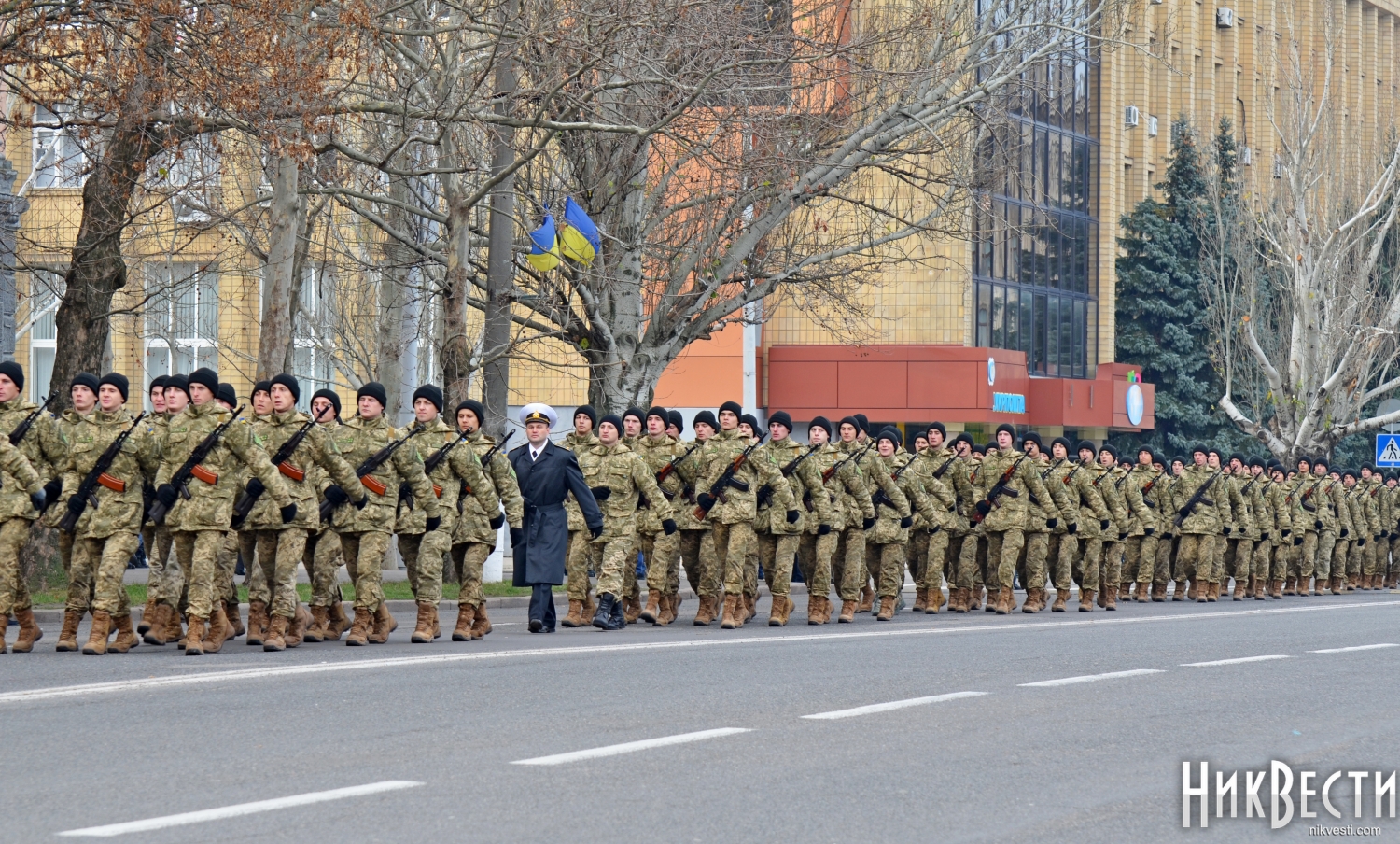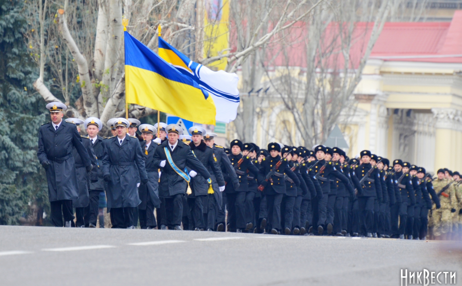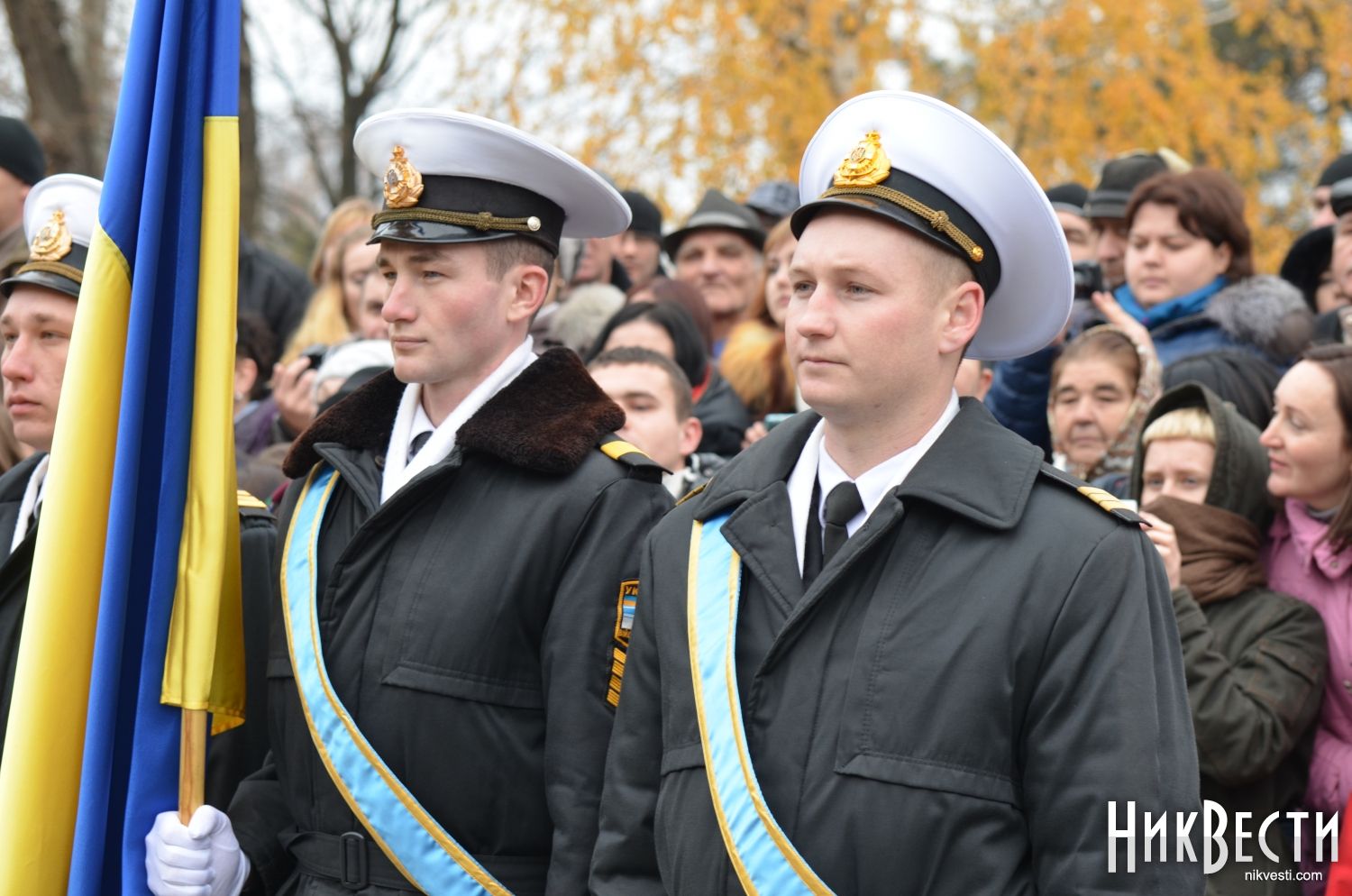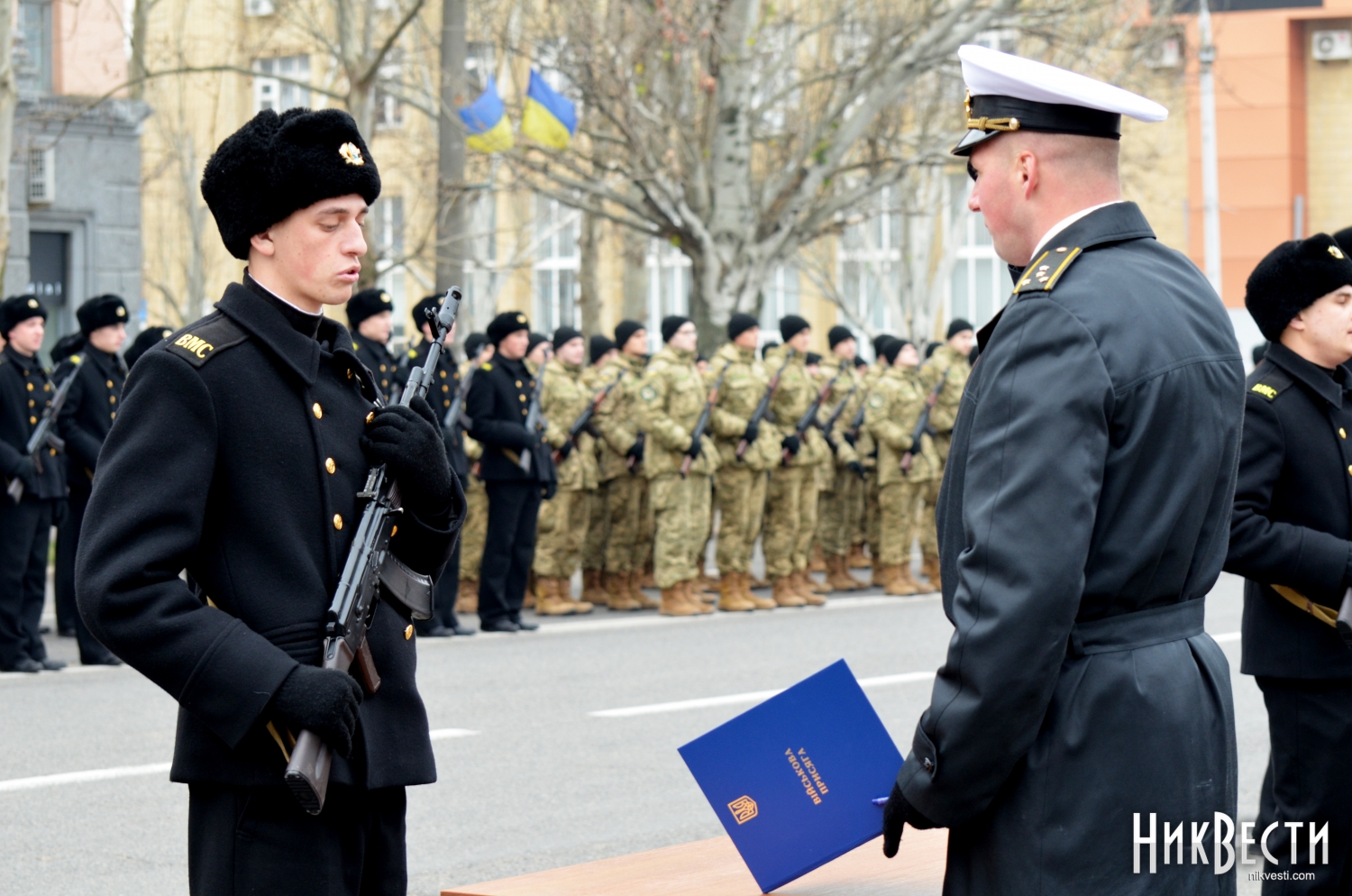 Сегодня, 6 декабря, на главной площади Николаева 346 новобранцев Учебного Центра Военно-Морских Вооруженных Сил Украины приняли присягу на верность народу и Украине.