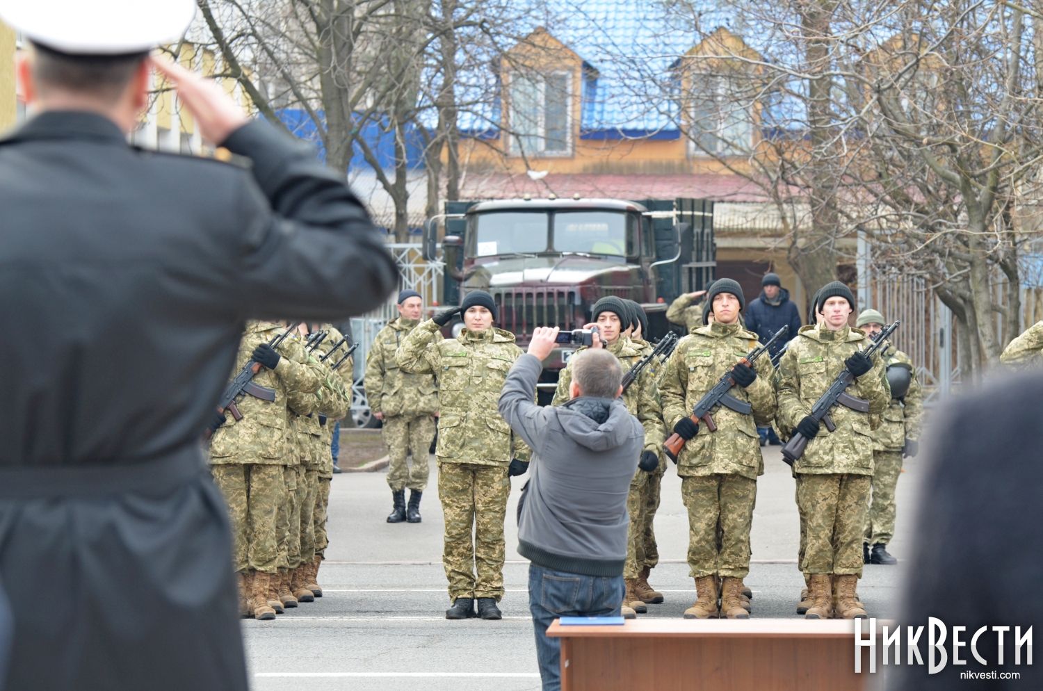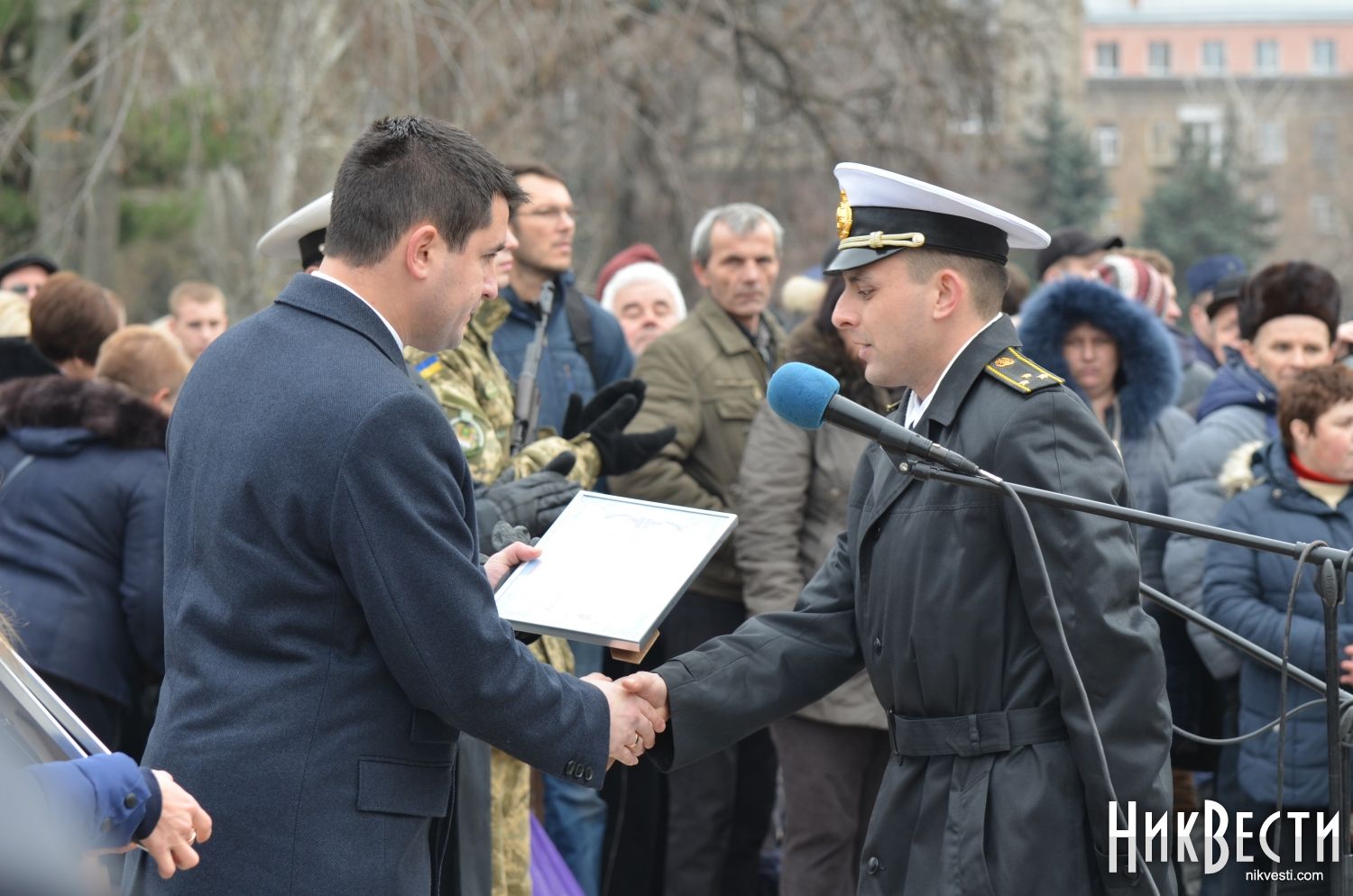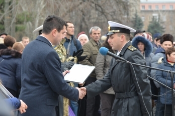 Поздравить бойцов с этим праздником пришли родные и близкие им люди, а также заместитель командующего ВМС ВС Украины по боевой подготовке – начальник управления боевой подготовки капитан 1 ранга Алексей Неижпапа, первый заместитель председателя облгосадминистрации Николай Романчук, председатель областного совета Виктория Москаленко, Николаевской городской голова Александр Сенкевич, председатель Печерской районной в городе Киеве государственной администрации Сергей Мартынчук, - передает корреспондент НикВестей.
