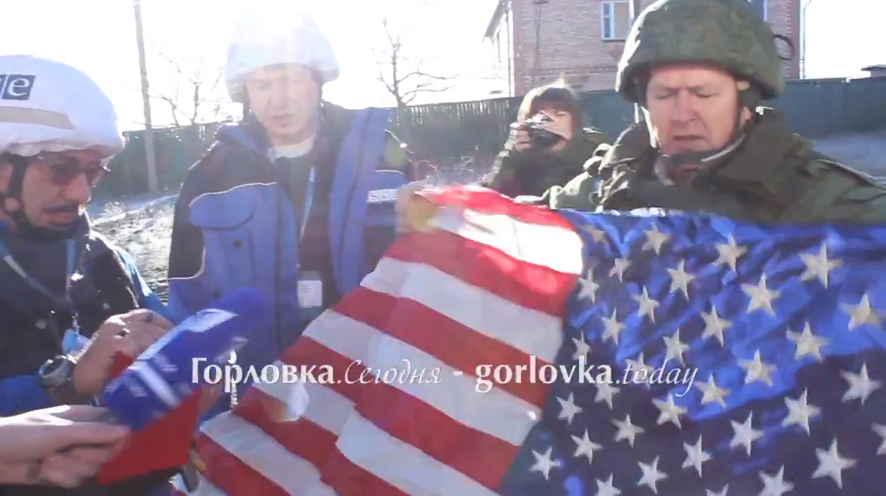 Российские боевики опубликовали видео, на котором один из них говорит наблюдателям ОБСЕ о ночной атаке наемников со всего мира на «непоколебимых русских» возле Горловки.