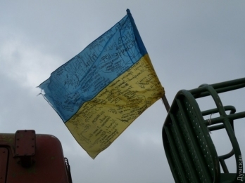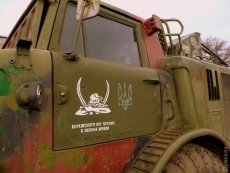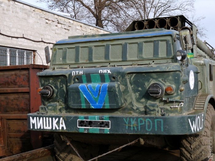Издание отмечает, что техника участвовала в АТО в Донбассе, о чем свидетельствует ее внешний вид: граффити и флаги Украины с соответствующими надписями.