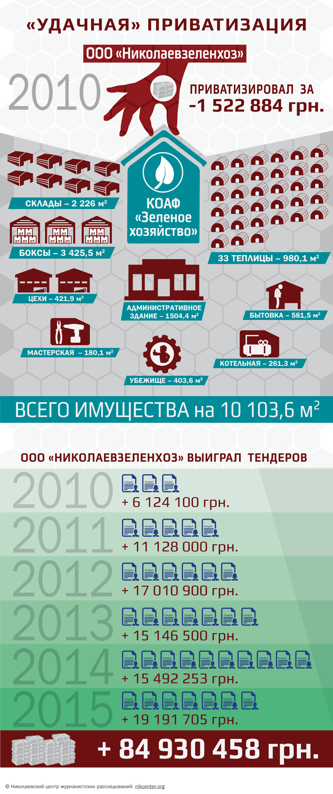 Авторы журналистского расследования привели цифры: по данным «Вестника госзакупок», за последние пять лет ООО «Николаевзеленхоз» выиграло 38 тендеров на общую сумму 84 миллиона гривен.
