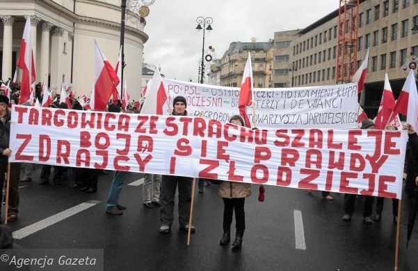 Gazeta Wyborcza отмечает, что участники проправительственного марша были не слишком креативными, скопировав у оппонентов идею красного "лондонского" автобуса, сопровождавшего участников акции.