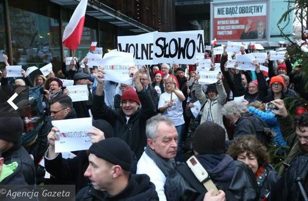 В воскресенье также состоялась антиправительственная акция в Гданьске. В ней, несмотря на холод и дождь, приняли участие 5 тысяч людей.