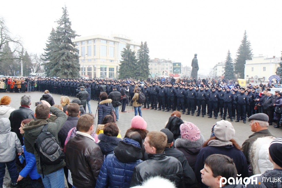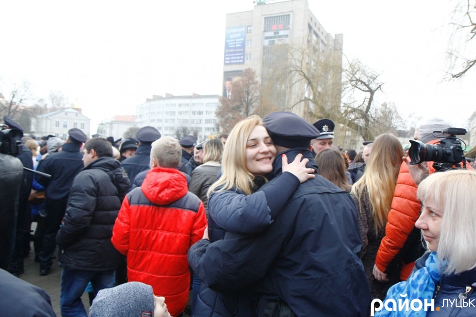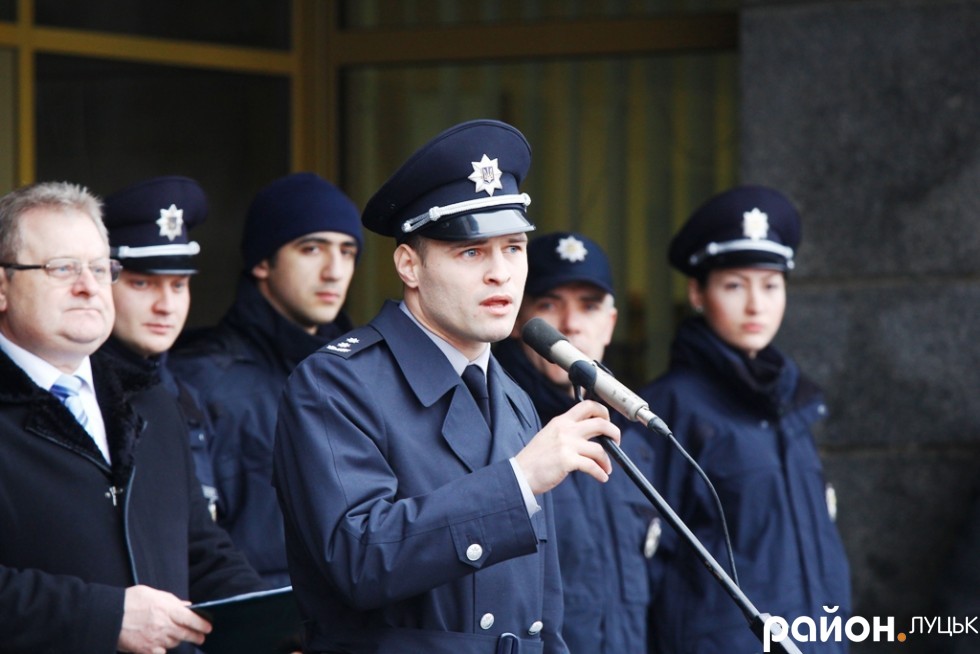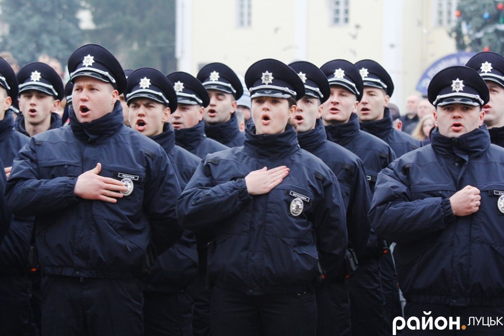 Патрульная полиция Луцка в субботу, 19 декабря, приняла присягу на верность украинскому народу. Участие в церемонии приняли и бывшие десантники николаевской 79-й аэромобильной бригады, а ныне руководители Национальной полиции Александр Фацевич и Евгений Жуков.
