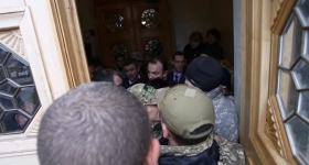 — Откройте двери! Вы гранату хотите или что? Откройте двери нах..й, - прокричал Соболев охраннику Верховной Рады.