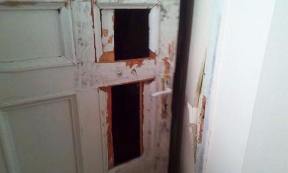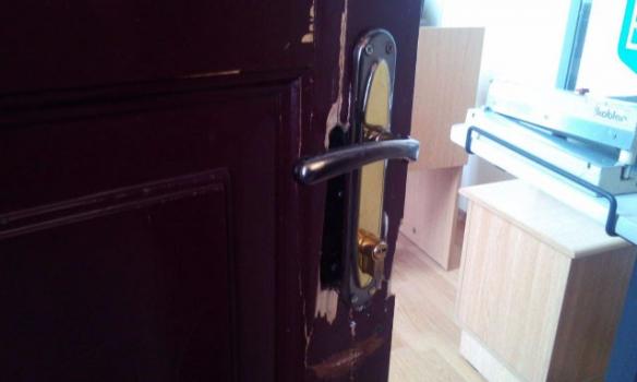 В результате попытки пройти в кабинет мэра три двери, ведущие из зала заседаний к кабинету городского головы, были повреждены, одну из них выбил мужчина, представившийся общественным активистом.