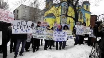 Как отмечает издание, многим из пришедших на митинг раздавали заранее подготовленные плакаты. Они заявили, что выступают против сектантов, то есть греко-католической церкви, которая, по их словам, навязывает людям идею единства с Украиной.