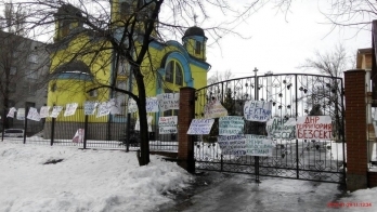 В оккупированном Донецке 29 января возле Храма покрова пресвятой богородицы Украинской греко-католической церкви по проспекту Васнецова, 2-б провели митинг «против сект».