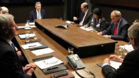 С таким поворотом событий и должны поначалу иметь дело участники военной игры. За столом председательствует экс-посол Британии в США Кристофер Мейер, его задача – формулировать вопросы, которые периодически выносятся на голосование.